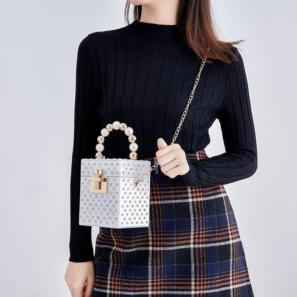 Acrylic Box Evening Crystal Clutch Bag Women New Pearl Beaded Handle Rhinestone Novelty Wedding Purse And Handbags