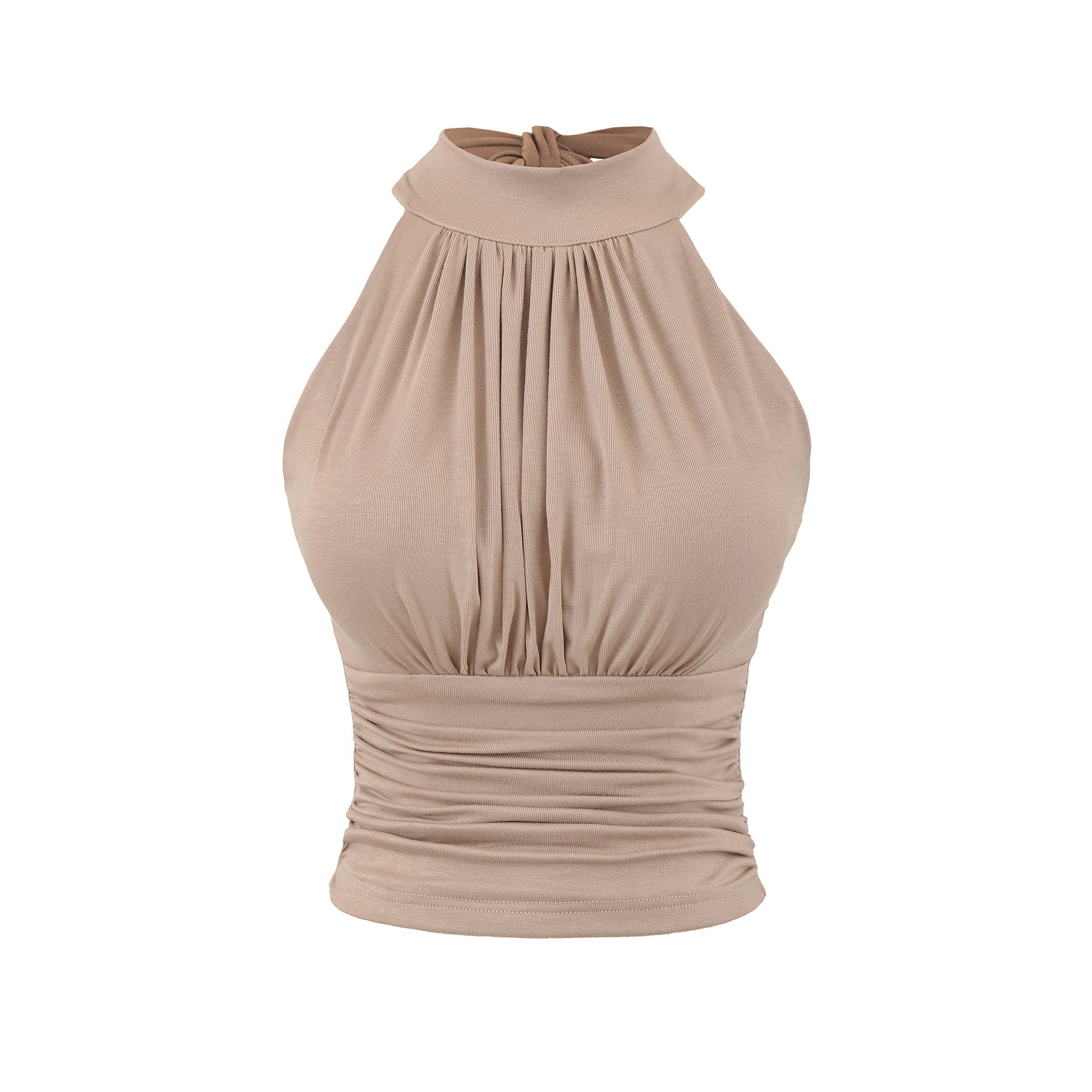 Sexy Backless Tie-up Pleated Fitted Halter Crop Top