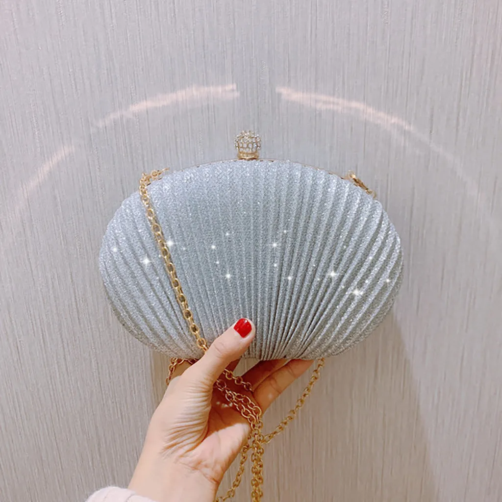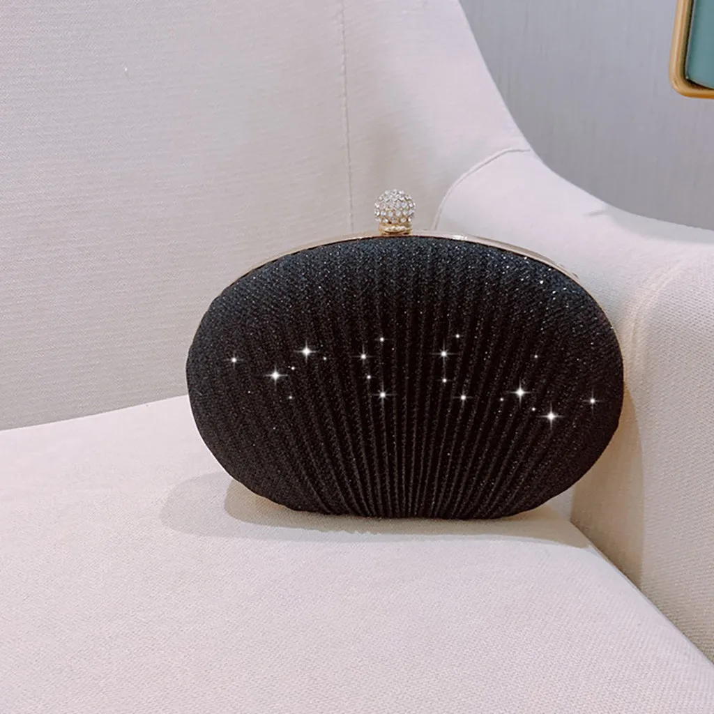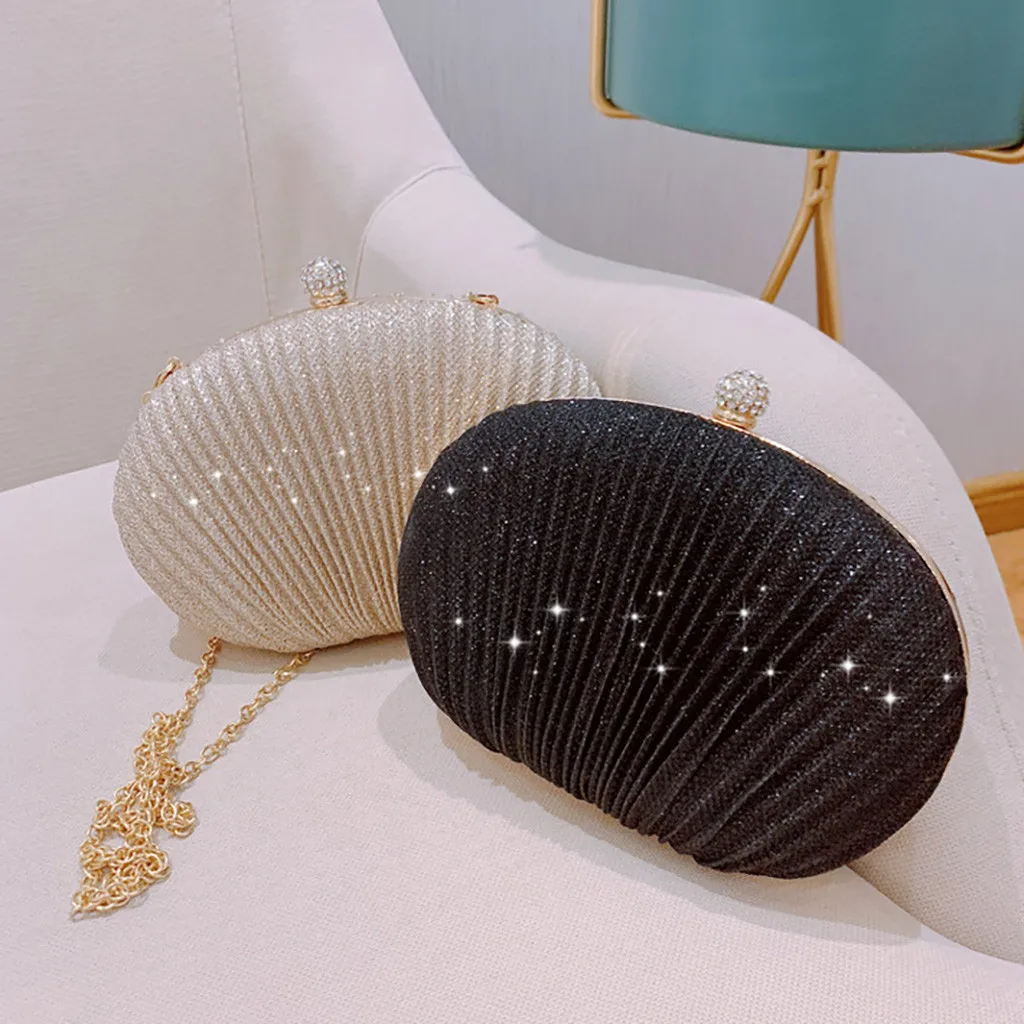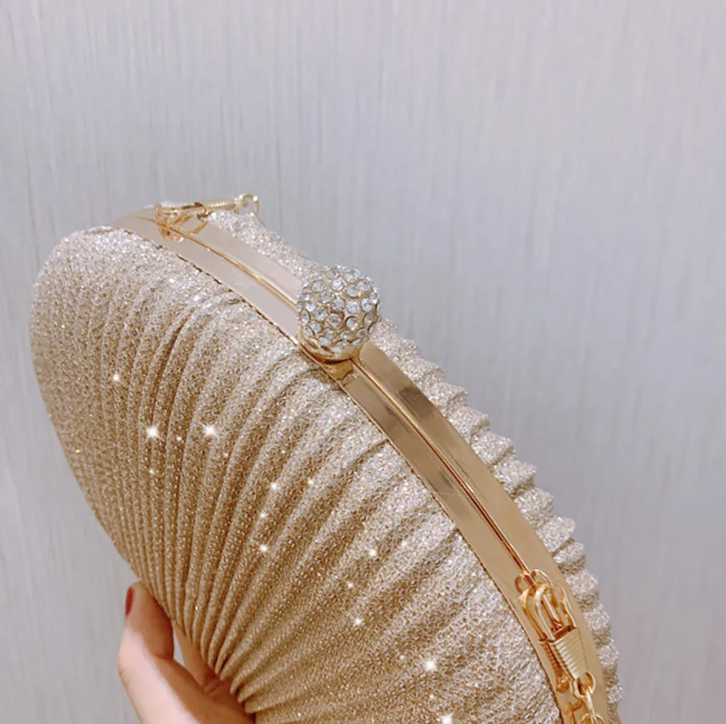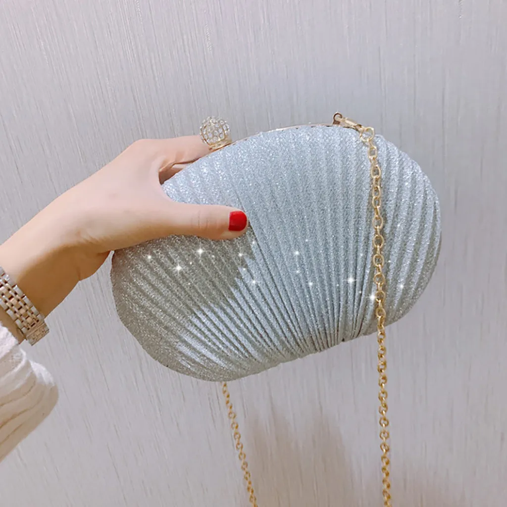 Women Evening Bag Shell Simple Handbag Solid color Party Sparkly Clutch Pleated Handbag kadın Canta Sac Cuir Femme Bolso Mujer
