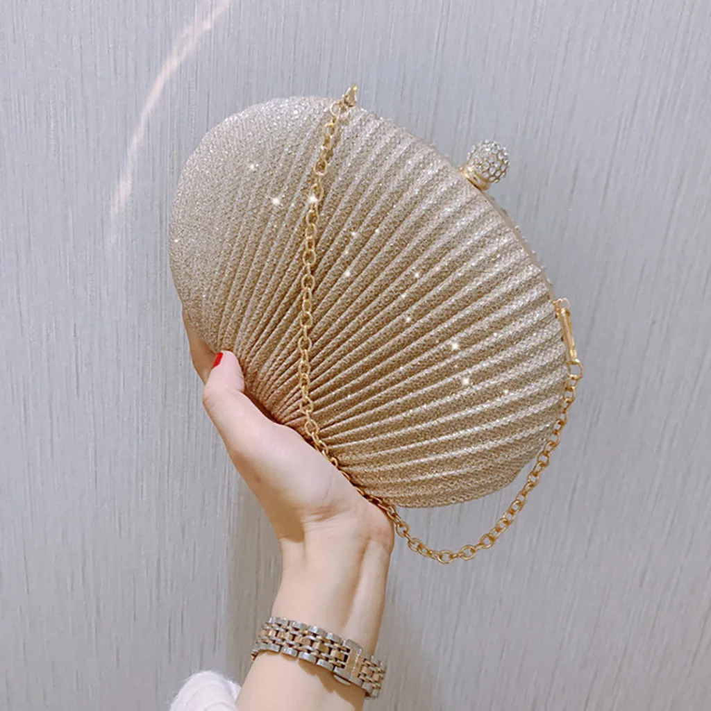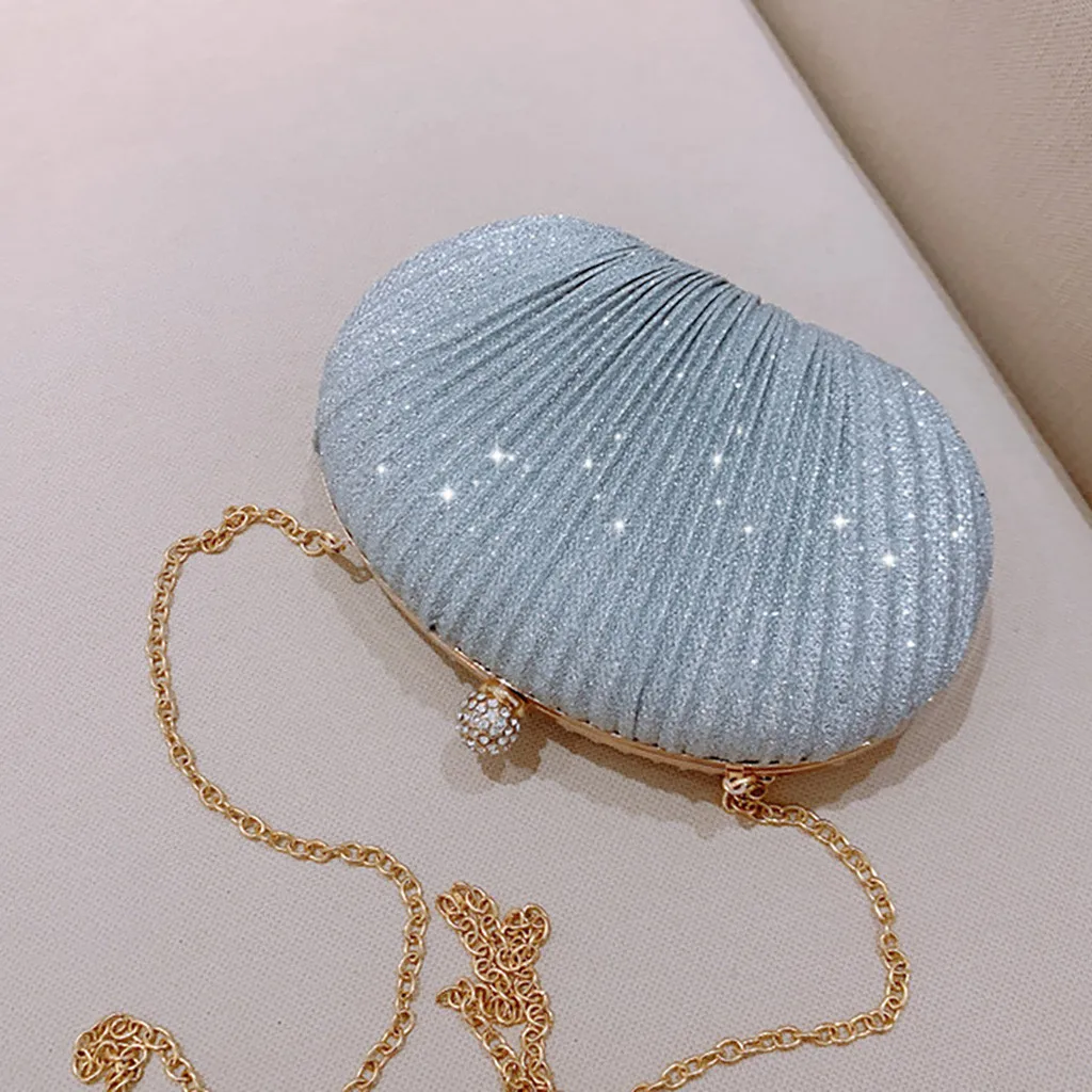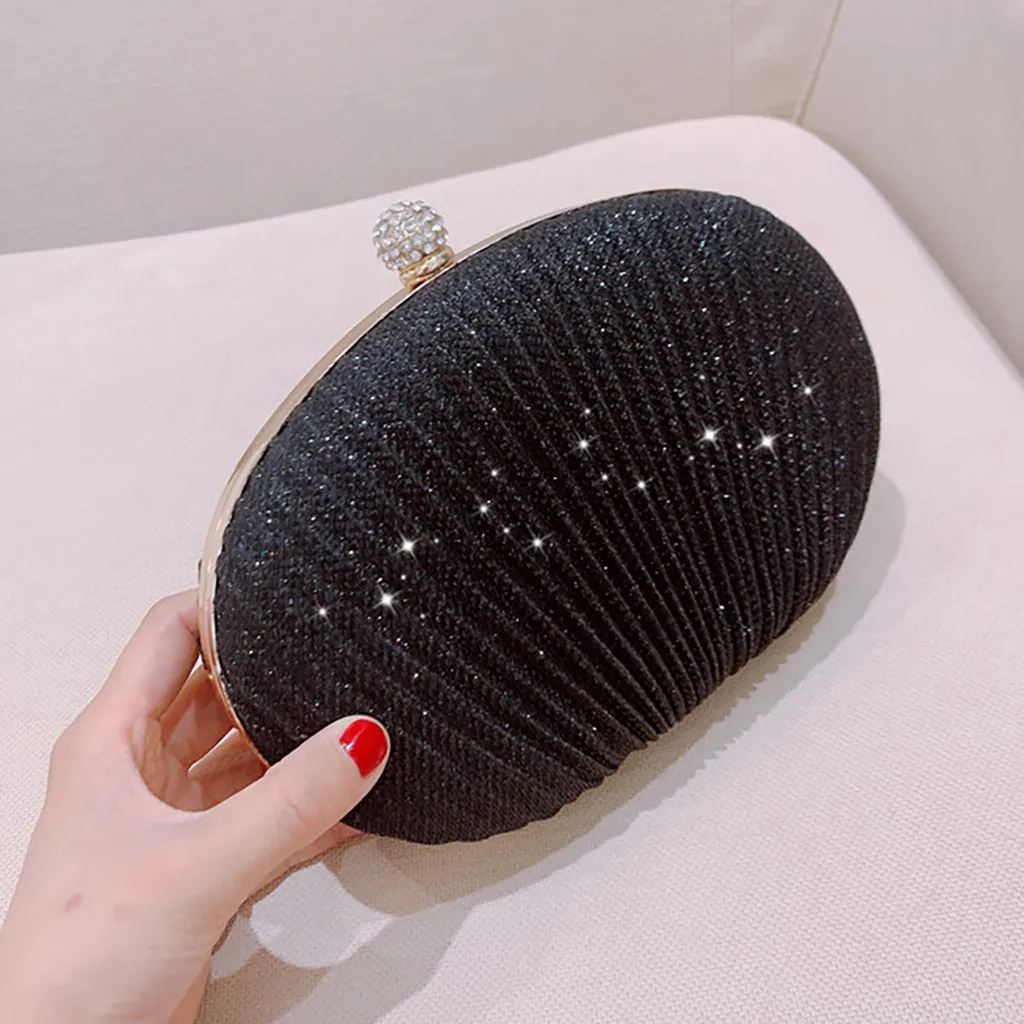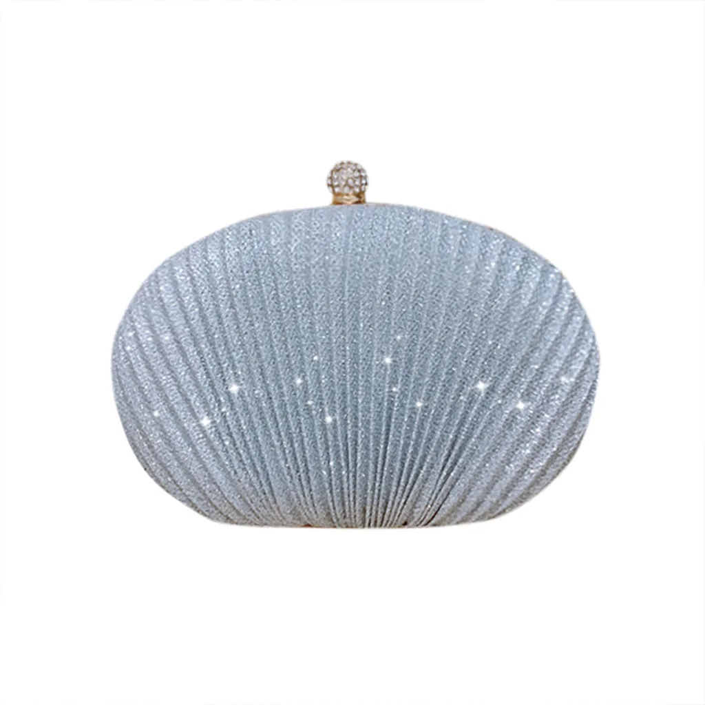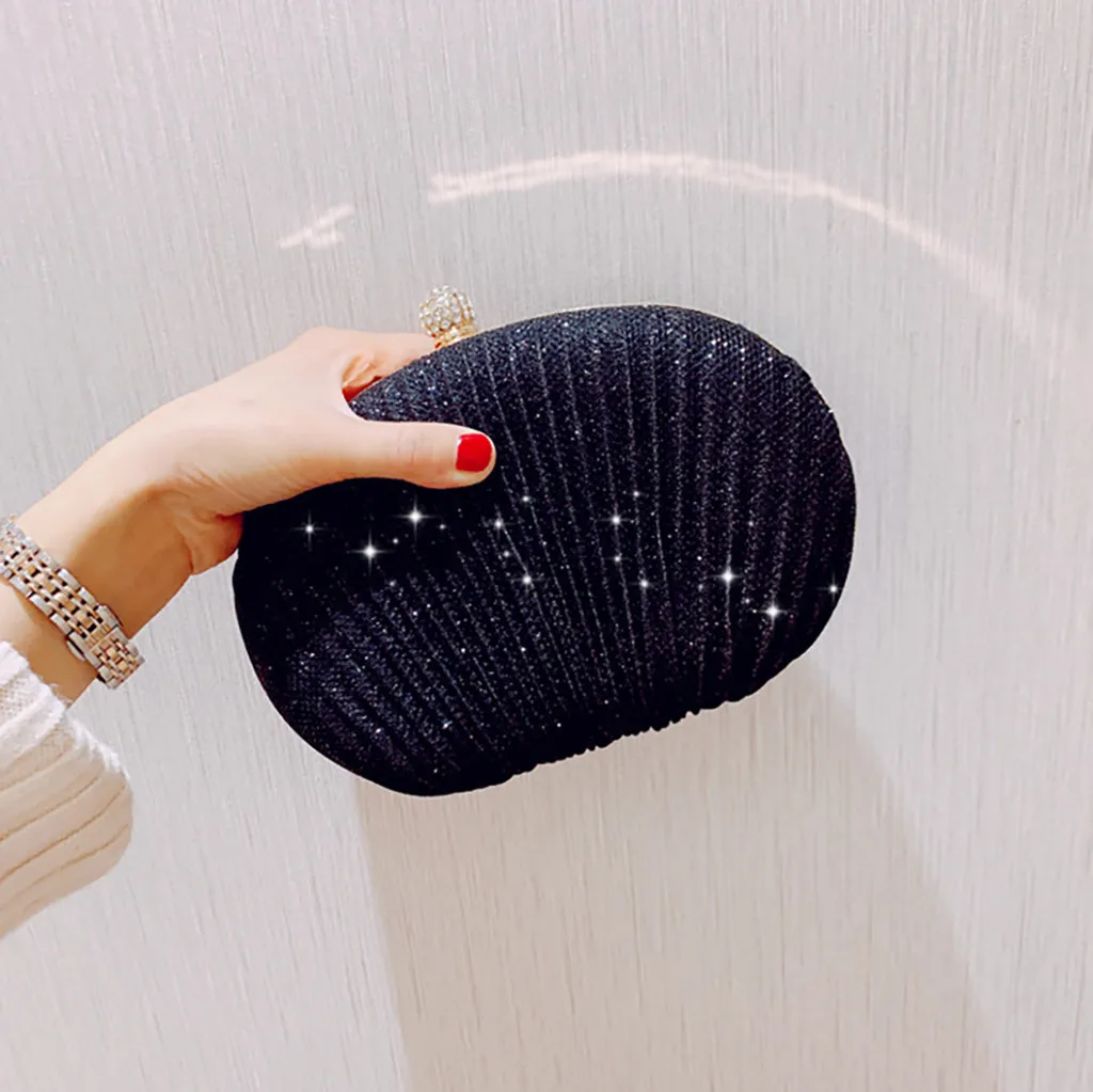 Women Evening Bag Shell Simple Handbag Solid color Party Sparkly Clutch Pleated Handbag kadın Canta Sac Cuir Femme Bolso Mujer