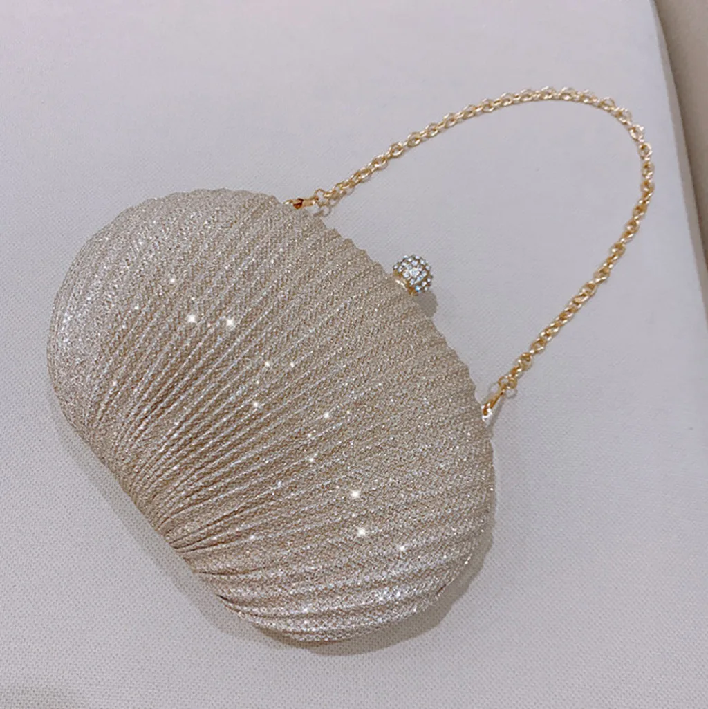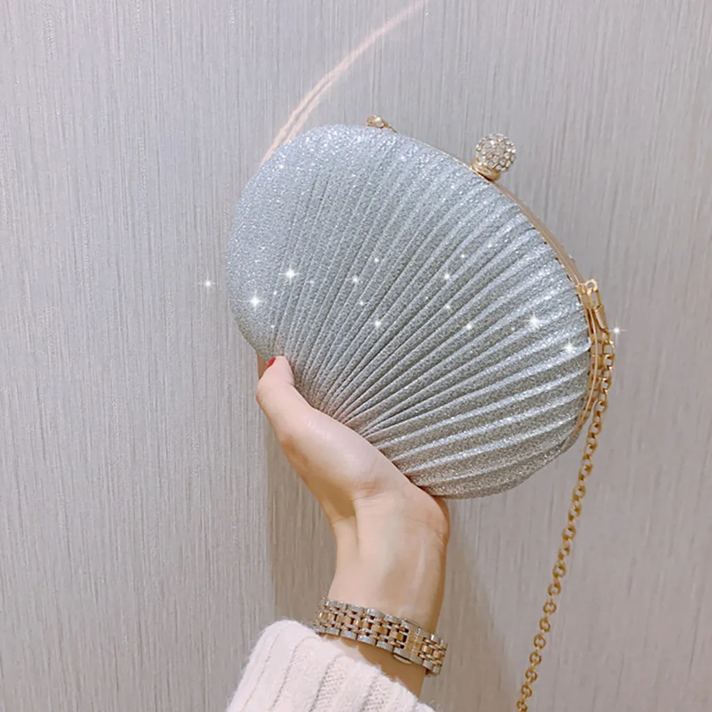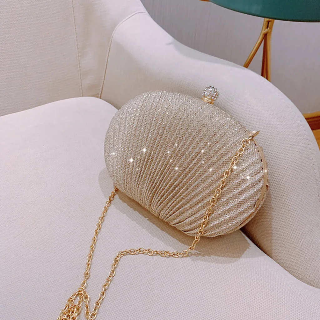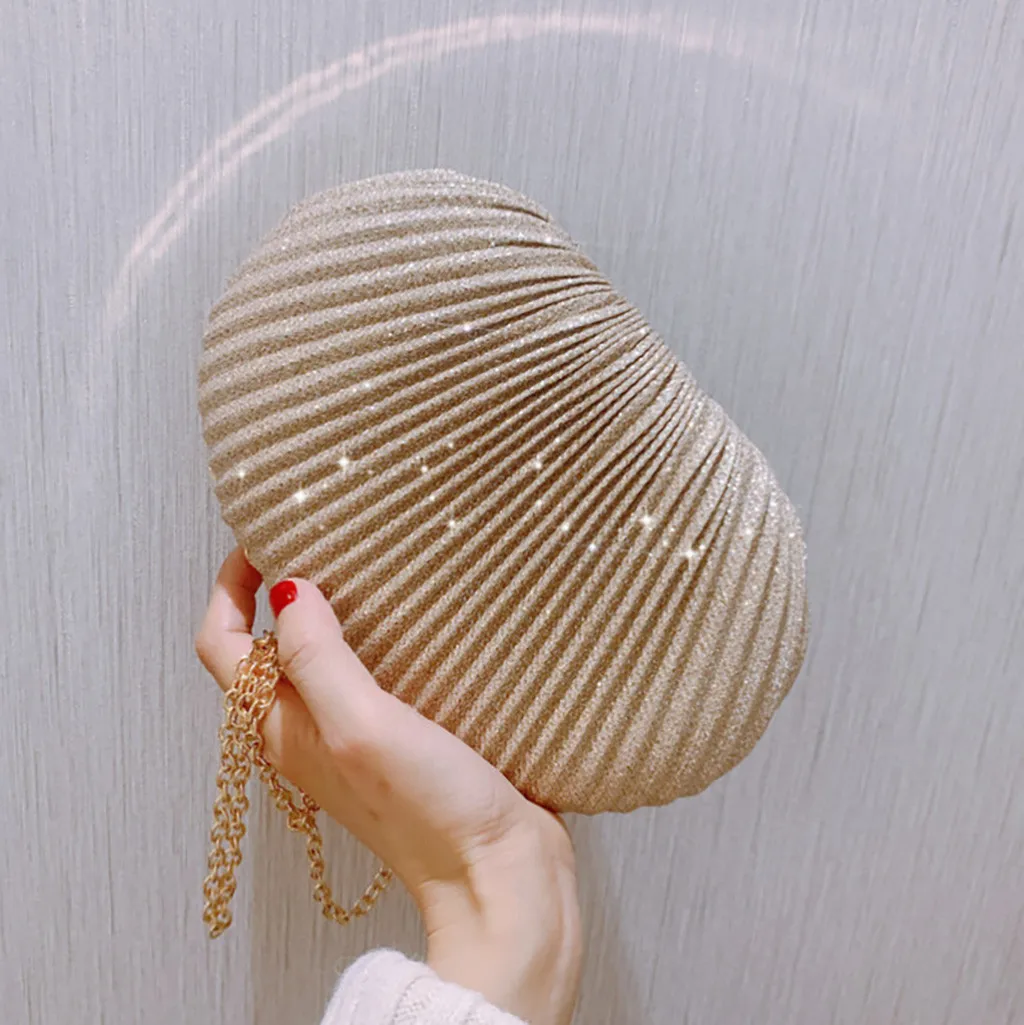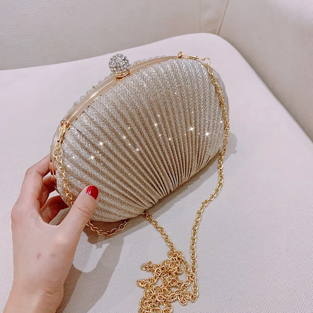 Women Evening Bag Shell Simple Handbag Solid color Party Sparkly Clutch Pleated Handbag kadın Canta Sac Cuir Femme Bolso Mujer