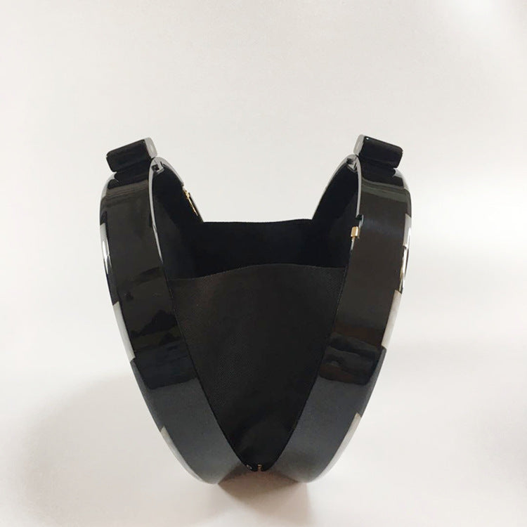 Women's Wallet Black and White Pearlescent Stitching Acrylic Clutch Fashion V-shaped Pattern Foreign Trade Dinner Bag Small Round Bag